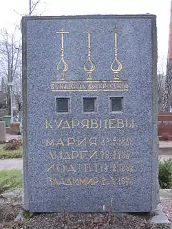 - Бабушка — Евгения Трифоновна Кудрявцева (? — 1907), погребена в семейном склепе близ Луги.