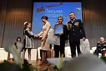 В феврале инициировала и запустила первый Всероссийский Фестиваль детских эссе «Письмо солдату»[95]. Проект был нацелен на то, чтобы ещё раз вспомнить о страницах нашей истории, сохранить память о солдатах минувших войн, об их славных подвигах и грандиозных победах, о силе и воле нашего великого народа, а также поддержать тех молодых ребят, которые сегодня несут свою нелегкую, но очень важную для страны службу по защите Отечества[96]. В первый год Фестиваль собрал около 500 участников, а в 2020 году несколько десятков тысяч участников со всей страны[97]. Фестиваль проводится в 2 этапа — региональный и федеральный. Сбор заявок для участия в проекте ежегодно объявляется в феврале — ко Дню защитника Отечества.