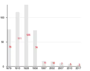 Число жителей по семейным спискам 1879 г.: 30 м. п., 46 ж. п.; по приходским сведениям 1879 г.: 36 м. п., 50 ж. п.[2]