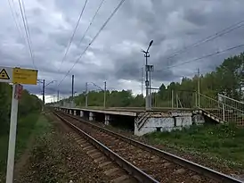 Единственная островная пассажирская платформа. Переход пассажиров на платформу осуществляется по настилам через пути. Не оборудована турникетами.