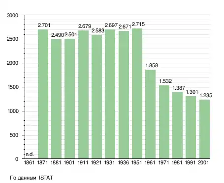 Население составляет 1228 человек (2008 г.), плотность населения составляет 88 чел./км². Занимает площадь 14 км². Почтовый индекс — 46020. Телефонный код — 0386.