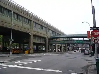 Станция и две эстакадных линии к востоку от неё эксплутировались совместно обеими компаниями, которые управляли городским железнодорожным транспортом в Нью-Йорке: Ай-ар-ти и Би-эм-ти. Станция состояла из двух частей, между которыми отсутствовал бесплатный переход. Нынешняя станция с 4 путями принимала поезда компании Ай-ар-ти, а севернее параллельно ей располагалась аналогичная двухэтажная конструкция с 4 путями, которая принимала поезда компании Би-эм-ти. Далее к востоку на линиях Флашинг и Астория каждая платформа каждой станции была разделена по длине на две части, где останавливались поезда Ай-ар-ти и Би-эм-ти, также без возможности бесплатного перехода между ними. Две компании использовали вагоны разной ширины, однако на линиях, обслуживаемых совместно, ширина вагона была унифицирована — использовались вагоны более узкого стандарта, как у компании Ай-ар-ти.