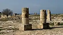 - Древнее святилище Афродиты с колонным залом, разрушенное землетрясением в 77 г. н.э. и отстроенное затем римлянами в I-II веках, в северной части поселения.