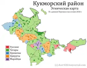 | Национальности | татары — 78,6%, удмурты — 14%, русские — 5,5%, марийцы — 1,6% [4] | ||||