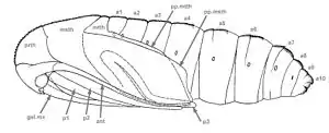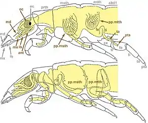 У насекомых, имеющих крылья, при линьке с личинки на куколку появляются протоптероны (наружные лопастевидные неподвижные выросты краев тергита, из которых при следующей линьке развиваются крылья имаго).