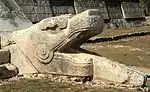 Змеиная голова у основания пирамиды Кукулькана в Чичен-Ице