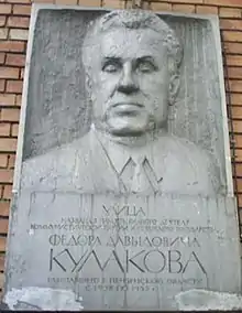 Фёдор Давы́дович Кулако́в (4 февраля 1918, с. Фитиж, Курская губерния — 17 июля 1978, Москва) — советский политический деятель, член Политбюро ЦК КПСС с 1971 года, секретарь ЦК КПСС с 1965 года (член ЦК КПСС с 1961 года). В 1955—1959 годах заместитель министра сельского хозяйства РСФСР, в 1959—1960 годах министр хлебопродуктов РСФСР, в 1960—1964 годах первый секретарь Ставропольского крайкома КПСС, заведующий сельскохозяйственным отделом ЦК КПСС в 1964—1976 годах.