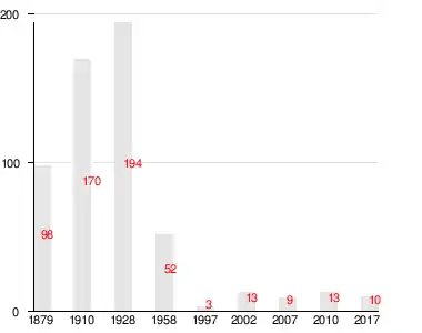 Число жителей по семейным спискам 1879 г.: 49 м. п., 49 ж. п.; по приходским сведениям 1879 г.: 61 м. п., 48 ж. п.[3]