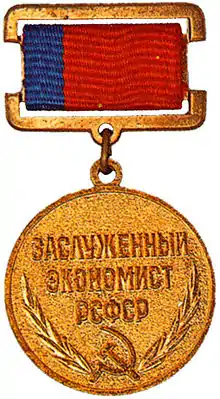 - Указ Президиума Верховного Совета РСФСР от 11 января 1985 года «О присвоении почетного звания „Заслуженный экономист РСФСР”»