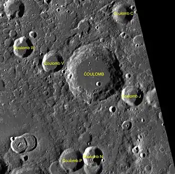 - Образование сателлитного кратера Кулон N относится к позднеимбрийскому периоду[1].