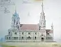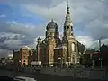 | Скорбященская церковь (Церковь иконы Божией Матери «Всех Скорбящих Радости»)[110] | Проспект Обуховской Обороны, 24 | 1894—1898 | А. В. Иванов, Г. Г. Голи фон | Закрыта и снесена в 1932 году, восстанавливается с 2017 года | ![]() |