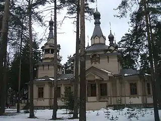 | Серафимовская церковь (Церковь преподобного Серафима Саровского (Графская))[105] | Песочный, Ленинградская улица, 10 | 1904 | В. В. Сарадинаки | Действующая, воссоздана в 2001 году | ![]() |