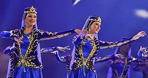 Азербайджанские народные танцы — это танцевальное искусство азербайджанского народа. Музыкальный размер азербайджанских танцев — 6/8 и 3/4. По характеру и ритму азербайджанские народные танцы делятся на весьма плавные, плавные и оживлённые. Они имеют характерный рисунок, обусловленный их ритмическим построением. Как правило, азербайджанский танец трёхчастный: первая часть — ход по кругу, вторая — лирической застывание на месте (сюзме) и третья — снова ход по кругу — уверенный, стремительный и торжественный. Многие танцы, особенно старинные, носят название наиболее любимых животных или растений: «джейрани» — газель, «лалэ» — полевой мак, «беневше» — фиалка, «иннаби» — плод фруктового дерева и др. Почти все азербайджанские танцы — сольные[92].