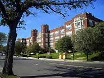Школы в США представляют собой несколько, часто соединенных вместе, одно- или двухэтажных корпусов. Рядом находятся парковки, спортивные стадионы и площадки. Даже если студенты в школе не проживают, школа представляет собой в большинстве случаев замкнутый кампус. В классах стоят одноместные парты. За каждым учеником закреплен также индивидуальный шкафчик, запирающийся на замок, для личных вещей школьника. В коридорах стоят автоматы с едой и питьём. Школьная форма распространена лишь в частных, религиозных школах и интернатах. Каждая школа имеет свой талисман, который рисуется на спортивной форме и форме девушек из группы поддержки[4].