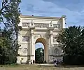 ![]() Сверху: Замок Леднице, Храм Дианы, Минарет, Храм Аполлона (вдали), Колоннада Райстна, Часовня Св. Губерта, Три Грации | |
