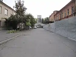 В начале 1980-х годов на площади Ленина установлена стела «Осетии ратная слава» [5]. В связи с этим, проход между площадью и переулком возможен только непосредственно через арку стелы.