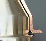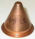 | Процесс запрессовки медной облицовочной юбки, она же в виде готового изделия и внутри снаряженного боеприпаса в разрезе | ||