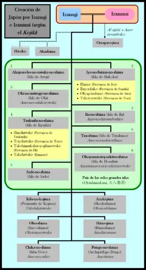 Согласно легенде, формирование Японии началось с рождения восьми больших островов. Эти острова, в порядке рождения:[9]