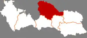 Район делится на 3 уличных комитета, 6 посёлка, 4 волостей и 7 национальных волостей.