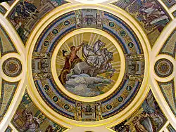 В четырёх углах главного купола находится композиция с тритонами, созданная младшим Дьёрдьем Ваштагом, Дьюлой Безереди, Деже Лани и Иштваном Сентдьёрди. В середине расположены лебеди и дельфины Белы Маркупа.