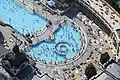 Воздушный снимок лечебной купальни — в середине плавательный бассейн, налево бассейн с сюрпризами, направо термальный бассейн
