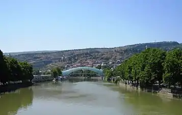 Вид на северо-западные окраины Тбилиси вниз по течению Куры