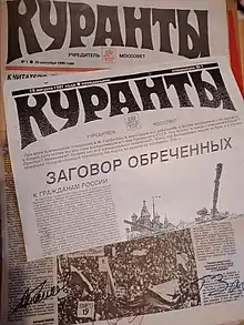 В 1991 году (19—21 августа) во время путча ГКЧП «Курантам», как и большинству газет, был запрещён выпуск. Тем не менее коллектив на собственной полиграфической базе выпустил пять номеров - каждый тиражом по 999 экземпляров, что тогда по закону допускалось делать без регистрации. 7 октября 1993 г. указом президента России Б.н, Ельцина был упразднён Моссовет, который являлся учредителем «Курантов». Учредителем газеты стал редакционно-издательский центр «Куранты», созданный коллективом самой редакции. В результате газета стала независимым общегородским изданием.