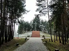 На вершине кургана располагается латинский крест, к которому ведёт гранитная лестница. У подножия лестницы располагаются два мемориальных камня, на одном из которых находится надпись на польском языке: