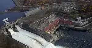 - здание ГЭС прислонного типа. Подводная часть здания длиной 171 м, шириной 40 м, высотой 29,1 м разрезана температурными швами на 5 агрегатных секций и секцию монтажной площадки;