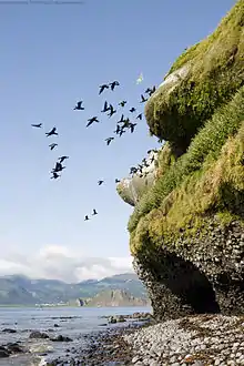 Прибрежный подводный мир, в отличие от островов, не только многочислен, но и весьма разнообразен. В прибрежных водах обитают нерпы, каланы, косатки, сивучи. Большое промысловое значение имеют: рыба[21], крабы, моллюски, кальмары, ракообразные, трепанги, морские огурцы, морские ежи, морская капуста. Моря, омывающие берега Курил, являются одними из наиболее продуктивных районов Мирового океана.