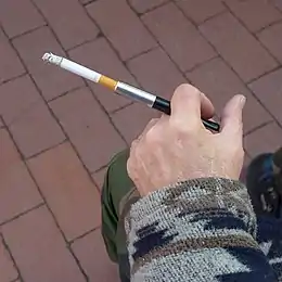 - Мундштук-трубка — в виде маленькой курительной трубки, в чашу которой вставляется сигарета.