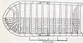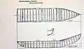 Изображённое судно около 6 метров длиной оборудовано килем и рулём (приспособленным с лодок с обшивкой из досок), с каркасом, сплетённым из ивы, и укреплённым шпангоутами. Обшивалась лодка, предположительно шкурами, после полного изготовления каркаса. Примерно в центре лодки устанавливалась мачта. Крепилась она двойными вантами к подобиям привальных брусьев расположенных снаружи борта и форштагом к форштевню. Фал форштага перекидывался через разветвление на вершине мачты чуть выше реи, на которой крепился прямой парус. На корме возвышались две перекрещенные дуги, которые могли служить для установки тента. Киль улучшал остойчивость судна, но корпус сохранял гибкость.