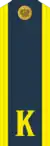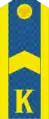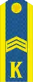 На погонах размещена буква «К» золотистого цвета. Высота буквы — 20 мм, расстояние от нижнего края погона до буквы — 15 мм. На погонах старшин, сержантов и ефрейторов в соответствии с воинским званием размещены металлические угольники золотистого цвета.[6]