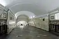 Центральный зал напоминает древнеримский зал базиликального типа. Пилоны и колонны дорического ордера покрыты светлым мрамором «коелга»[5]. Люстры по оформлению перекликаются с древнеримскими люстрами-светильниками, напоминающими снизу солнце. Покрытие пола — красный и серый гранит. На полу были сделаны крупные геометрические узоры[5]. Авторы проекта станции архитекторы Г. А. Захаров и З. С. Чернышёва были удостоены Сталинской премии. В основаниях свода центрального зала по всей длине проходят узкие металлическим фризы с филигранным орнаментом[5].