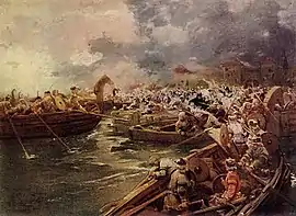 Итак, жившие там люди, узнав об их приходе, собрались вместе и стали мужественно бороться и защищаться. Одержав победу и уничтожив в резне половину данов, они разграбили половину их кораблей, захватив у них золото, серебро и много другой добычи.