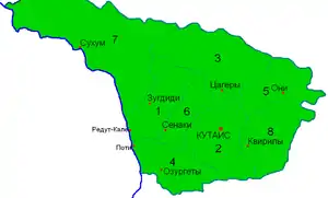 | 2 | Кутаисский | г. Кутаис (32 476 чел.) | 2985,9 | 221 665 |