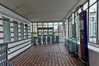 В отделке вестибюля использованы керамическая плитка и цветной пластик. Платформа покрыта асфальтом. Архитекторы станции: Ю. П. Зенкевич, Р. И. Погребной.