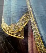 Отворот мантии с псевдокуфическими символами. Дева Мария и младенец. Паоло Венециано, 1358 год. Лувр