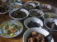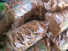 - Hpet htohk (букв. Обертка из листьев) — мясо, бумага для выпечки, имбирь, чеснок, молотый перец и соль. Обычно подаётся с супом или лапшой.