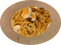 - Kya zan thohk — салат из стеклянной вермишели с варёным жульеном из креветок и пюре из утиных яиц карри и картофеля.