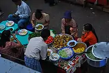 Страны, граничащие с Мьянмой, особенно Индия, Китай и Таиланд, оказали влияние на бирманскую кухню.[5] Индийское влияние обнаруживаются в бирманских вариантах блюд, таких как самоса и бирьяни, а также в индийских карри, специях и хлебе, таких как наан и паратха. Южно-индийская кухня, особенно четтиарская, также популярна в городах. Китайское влияние на бирманскую кухню проявляется в использовании таких ингредиентов, как творог из бобов и соевого соуса, различных видов лапши, а также в технике жарки с перемешиванием. Как и в соседних Таиланде и Лаосе, жареных насекомых едят в качестве закуски.