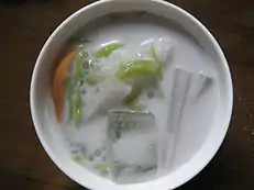 - Shwe yin aye — желе из агара, тапиока и саго в кокосовом молоке.