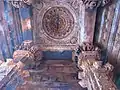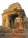 Вход-портик в храм представляет собой продолговатый проход в следующий открытый вестибюль (мандапу). Он богато украшен круговой гирляндой из камня. Орнамент состоит из любовных пар, красивых цветов и мифических животных. В мандапе пространство расширяется. Вестибюль украшен балюстрадой (какшасаной), резным потолком, колоннами и пилястрами. Центральный зал (маха-мандапа) представляет собой закрытое помещение внутри боковых трансептов. В больших храмах в центре зала находится квадратное возвышение (антарала) с колоннами по углам, которое преграждает прямой путь к святилищу. Вход в святилище всегда богато декорирован. Внутри него находится мурти, статуя божества или лингам (если храм посвящен Шиве). Интерьер храмов обильно украшен деталями и скульптурой. Потолок покрыт искусным геометрическим рисунком. Самый знаменитый элемент внутреннего убранства представлен поддерживающими фигурами апсар. Образы апсар, являющиеся шедеврами средневековой скульптуры, изображены в чувственных позах и идеально отполированы камнерезами. На фасаде святилища чаще всего помещают две или три группы статуй божеств и их спутников, точные копии с внешнего фасада храма[4].