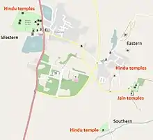 Западная группа состоит из 9 индуистских храмов и только 5 из них представляют наибольший интерес как для туристов, так и для специалистов. Четыре храма джайнов восточной группы исполнены не столь качественно и изысканно. На юге расположено несколько второстепенных храмов, которые посещают, преимущественно, туристы, интересующиеся историей. В целом из 22 храмов главной популярностью пользуются только 5 храмов из западной группы, ежегодно привлекающие тысячи туристов[6].