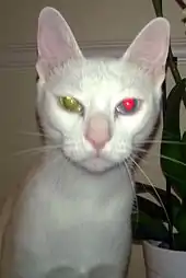Разноцветные глаза (Гетерохромия) являются более редкими (так как на фотографиях као-мани чаще всего отображаются кошки именно с разноцветными глазами, ошибочно считается, что разноцветные глаза — самые распространённые).