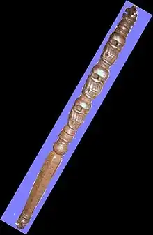 Кхатванга – ритуальный жезл, чья верхняя часть состоит из сосуда с нектаром бессмертия, стоящего на ваджре, двух голов и черепа, увенчанного ваджрой или трезубцем. В буддийской иконографии этот атрибут имеют Гуру Падмасамбхава, богиня Ваджраварахи и некоторые другие божества.