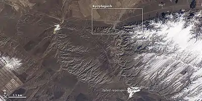 В 2010 году 11 марта произошло интенсивное таяние снега, обильные дожди, а также неосмотрительность местных властей привели к размыву дамбы и прорыву Кызылагашского водохранилища в верхнем течении реки Кызылагаш. Ширина волны селевого потока составляла 1,6 километра, высота — 3 — 4 метра[6].