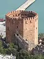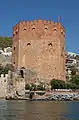 Восьмиугольная башня из красного кирпича защищает Терсане (Tersane — «судоверфь»), который датируется 1221 годом. Высота сооружения — 33 метра (но если считать от уровня моря, то выше), диаметр — 29 метров, длина каждой стены — 12,5 метров[3]. В башне 5 этажей. По высоким каменным ступеням (всего их 85) можно подняться на самый верх. Падающий сверху солнечный свет достигает первого этажа. Посередине башни расположен резервуар. Подобно многим зданиям города, над зубчатыми стенами башни развевается турецкий флаг.