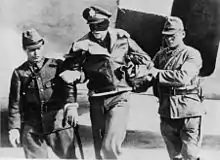 ![]() Офицерский состав службы безопасности Сухопутных войск в поезде (1935 г.) | |