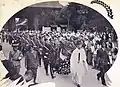 Кордоны военной полиции во время бракосочетания принца Хирохито и принцессы Ёсико спиной к коронованным особам. (1924 г.)